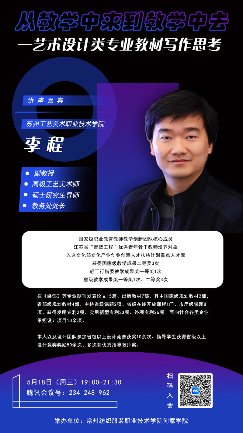 【讲座预告】从教学中来到教学中去——艺术设计类专业教材写作思考