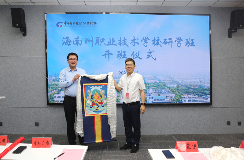 图2 海南州职业技术学校向公司赠送唐卡