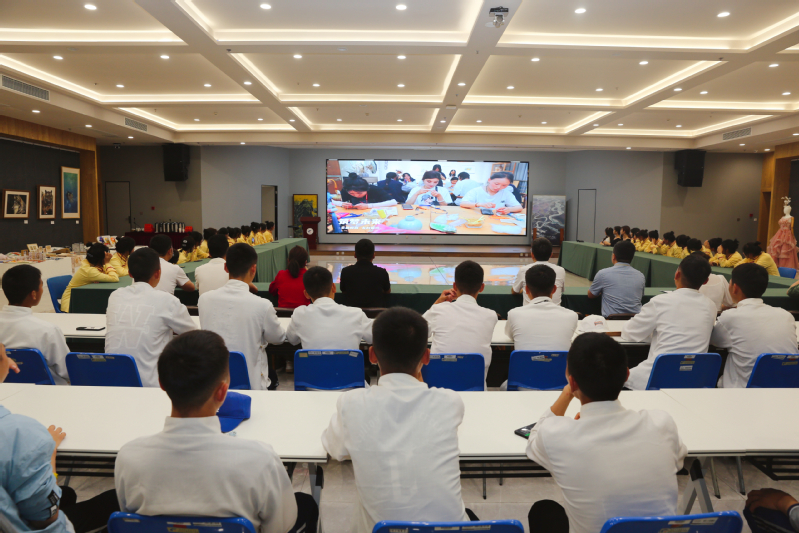 活动首先播放了本次研学班几天学习过程中的精彩瞬间,本次研学活动旨在加强不同学校之间的交流,促进师生间的互动与合作,提升公司产品质量。海南州职业技术学校师生从6月12日开始在公司进行一周的研学活动,包含了手工艺品、泥塑课程,走访调研了武进博物馆、徐氏竹刻博物馆、东方盐湖城、青果巷,梳篦博物馆等地方,可谓是收获满满。师生们饶有兴趣地观看了视频。