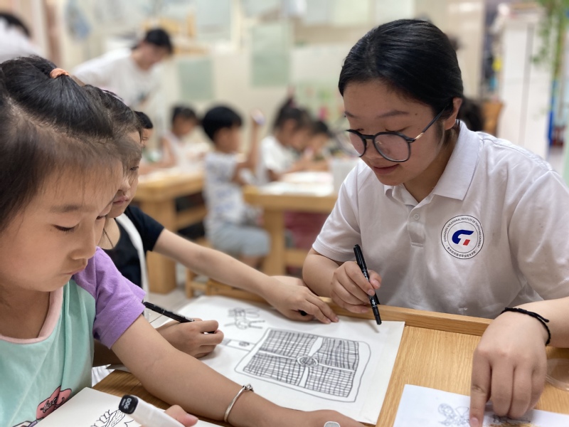 图3 实践团队认真指导孩子们的创作