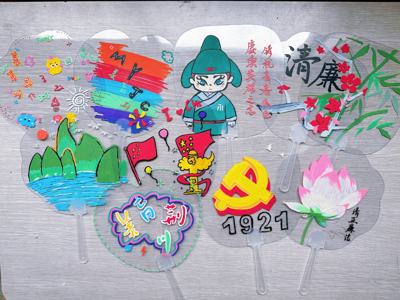 为进一步丰富社区儿童的暑期生活,感受艺术之美,提升艺术修养。实践队在社区道德讲堂开设了“手绘团扇,以画传情”活动。孩子们在实践团成员的帮助下一丝不苟精心绘画,稚嫩的笔触表达着小小的他们对祖国、对生活无尽的热爱。整个活动现场气氛热烈笑声欢畅,孩子们拿着自己的得意之作爱不释手,同时,实践团成员也自发绘制了以“清廉”、“荆川精神”、“建党”等主题的团扇表达在实践中学党史、强信念、跟党走的决心。