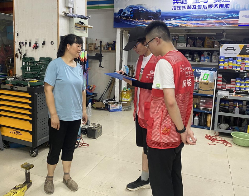 随着实践活动进入尾声,“美育荆川”实践团开展了“当好一日网格员,我为居民办实事”活动。在社区网格员的带领下,实践团穿上红马甲,拿上工作簿,作为一日网格员亲身体验了居民急难愁盼问题调研、消防安全巡查与宣传、垃圾分类督导等常规网格项目。走完一圈,身上的衣服已被汗水浸透。通过与居民广泛交流,细心排查走访,成员们都感受到与社区居民的距离更近了,同时深切体会到“上面千条线,下面一根针”,网格员担负着基层最末梢穿针引线的工作,是守护居民群众的幸福安康的重要角色。