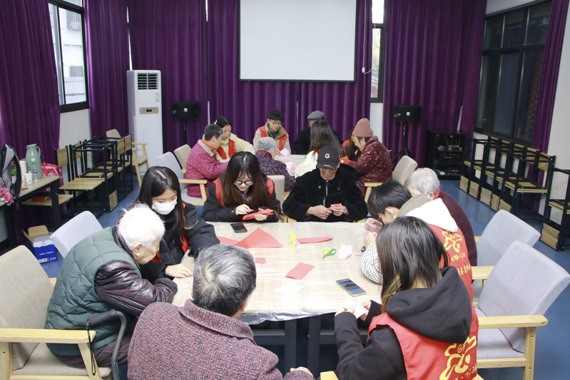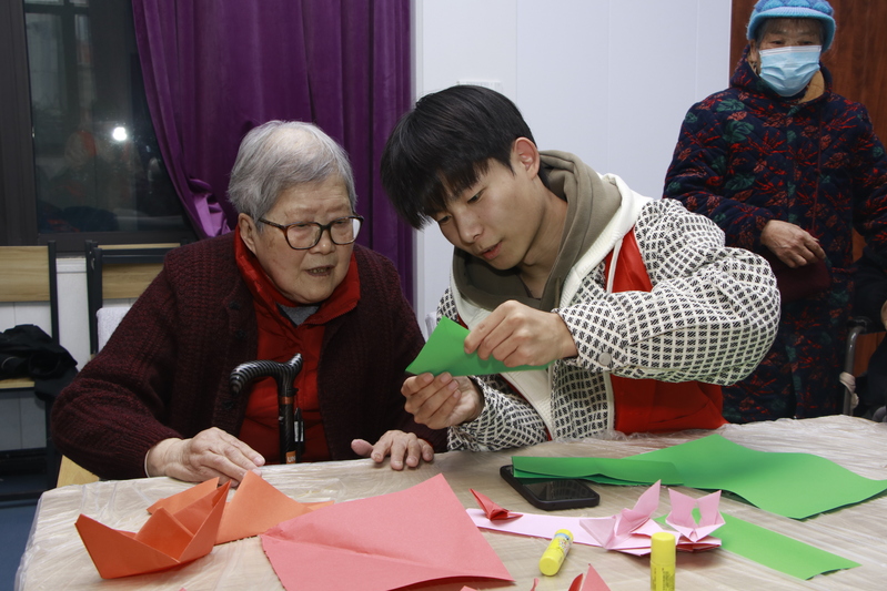 图2 心青年志愿者手把手教老人折纸