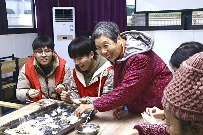 图1 老人教心青年志愿者包饺子
