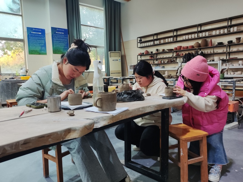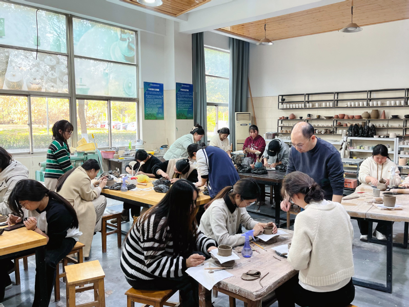 12月7日下午,创意学院在8号楼陶艺工坊开展“以手造物,以物抵心”陶艺技能传承活动。