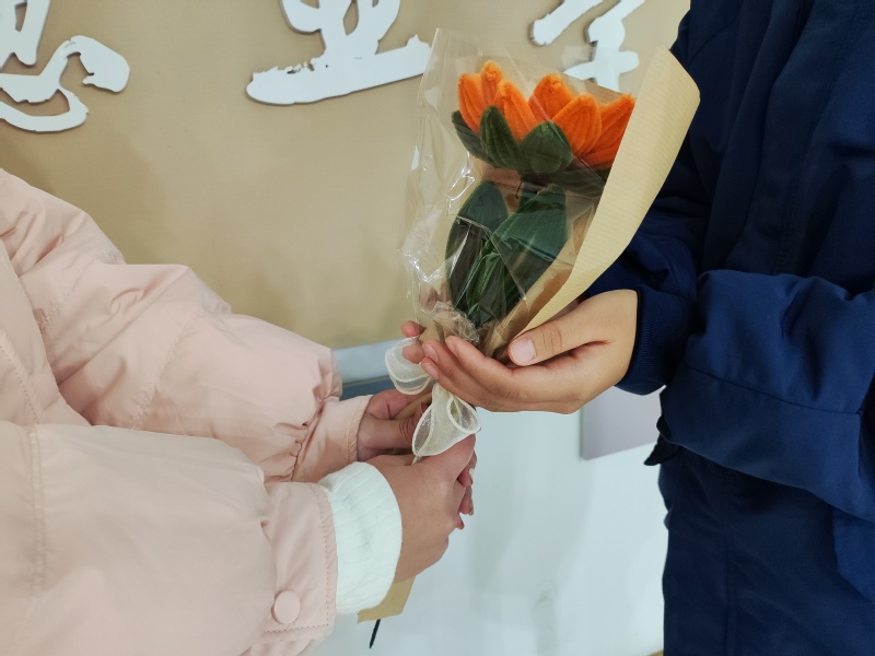 活动现场,指导老师徐静首先向同学们讲解了扭扭棒手工艺品制作的步骤,并进行现场教学。同学们热情洋溢,纷纷用扭扭棒在剪、卷、捏、粘一步步过程中制作花束,一朵朵美丽的向日葵、薰衣草在同学们的巧手上慢慢“绽放”。每个同学都开动脑筋,充分发挥自己的想象力和创造力,尝试制作出各种各样的花束。活动结束,同学们把满载祝福的花束送给自己、送给同学、送给老师,感恩遇见,感恩经历,感恩生命里所有温暖的相遇!