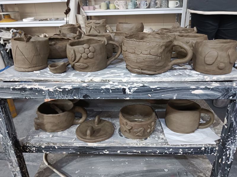 活动开始,指导老师严骏现场示范,向大家讲解了泥条盘筑水杯的一道道工序,如揉泥、画杯底、盘泥条、融合泥壁、修饰、把手等。泥条盘筑法需要掌握好泥条粗细、搓制时要均匀有力,同时要控制泥条的湿度,太干会裂,太湿会塌,制作过程中非常锻炼专注力,需要同学们静下心来,忘我塑造。杯体制好之后,同学们可根据自己的喜好,或在杯体上刻画出喜欢的团案,或捏成小动物粘在杯体上。不同于流水线生产的千篇一律,陶艺制作的每一步都倾注了创作者的专注与热情。陶艺制作是一门充满匠人精神的艺术,用心、坚韧、追求完美,通过这次活动,希望同学们能够沉下心来,爱一行、专一行、精一行。