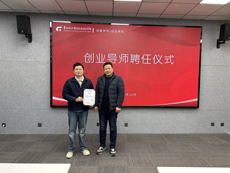 图2 创业学院副经理王磊给施云飞颁发创业导师聘书