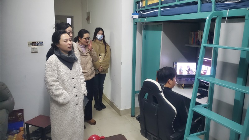 图1 创意学院党总支书记祝燕芳、副书记柯赟洁组织学工办辅导员、班主任走访宿舍