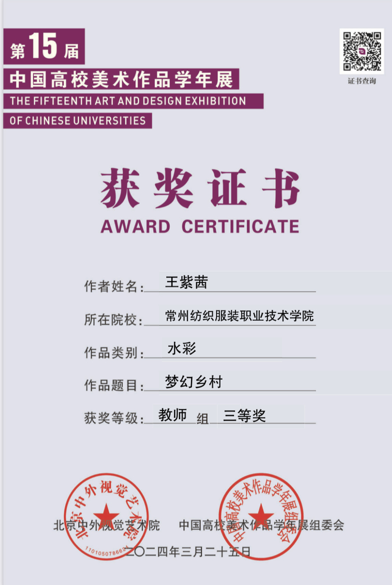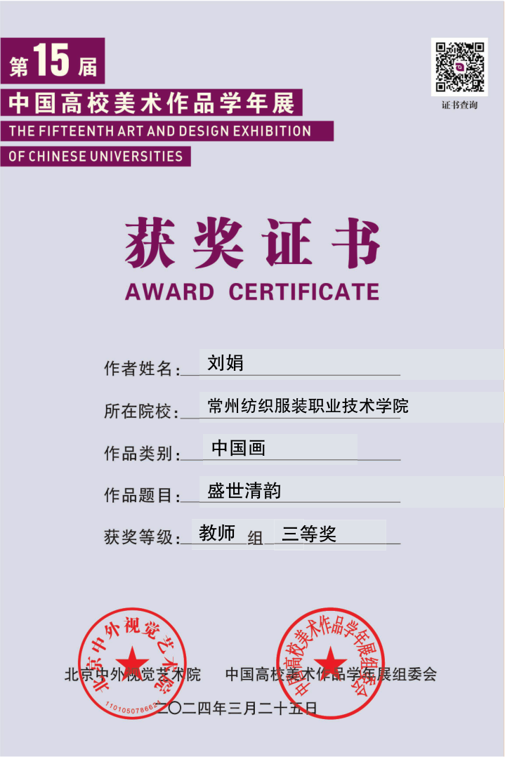 此次获奖是创意学院高度重视艺术基础素养建设,支持教师参展参赛,努力打造学院艺术氛围的成效体现,也是学校坚持美育深入推广、鼓励教师不断提升自我、挖掘学术潜力的成功展示。
