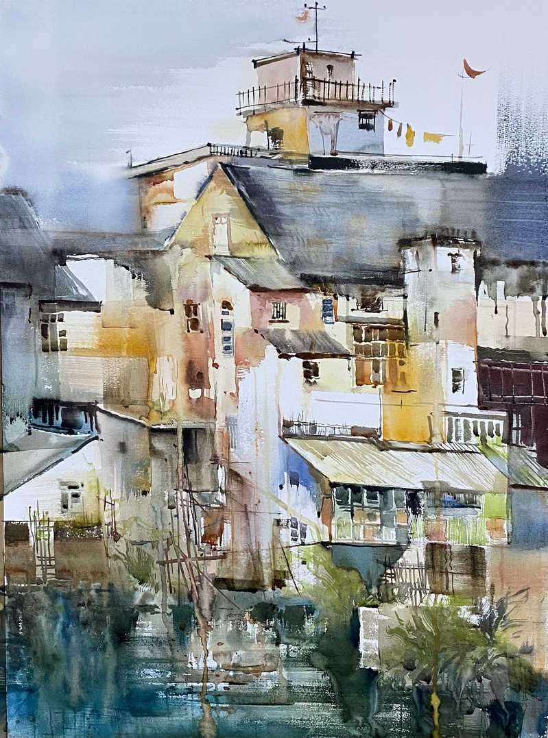王紫茜 水彩作品 《梦幻乡村》 76cm×58cm
