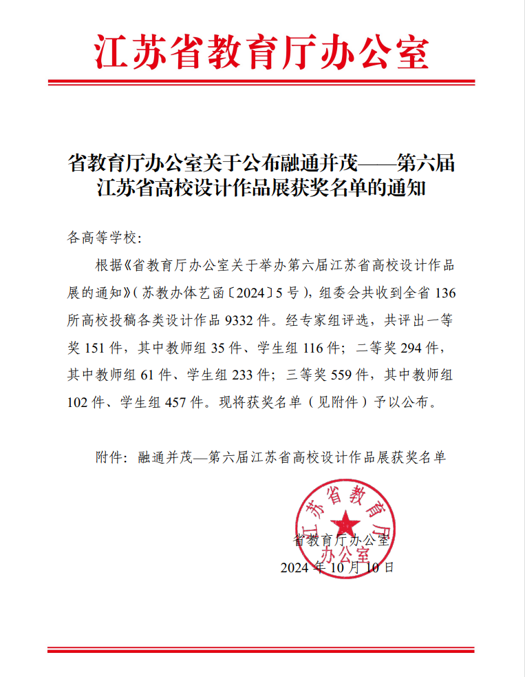 近日,江苏省教育厅主办的“融通并茂——第六届江苏省高校设计作品展”获奖名单揭晓。betway西汉姆联师生参赛作品得到评委高度肯定,荣获教师组一等奖1项,员工组一等奖1项、二等奖2项、三等奖5项。