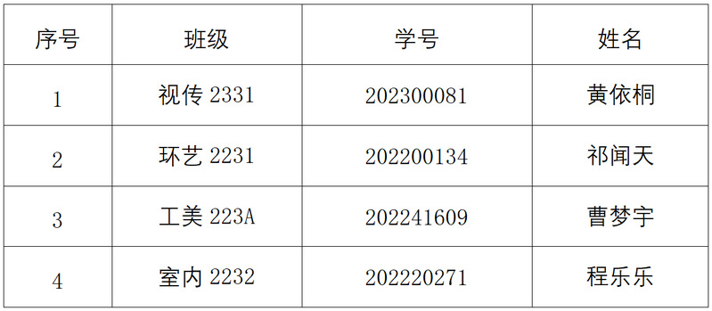 根据公司《国家奖学金、国家励志奖学金、国家助学金管理办法》文件精神,经过员工个人申请、班级推荐、betway西汉姆联国家奖学金评审小组评选,创意设计学拟推荐下列四名同学参与2024年国家奖学金学校层面的扩充评选。具体名单如下: