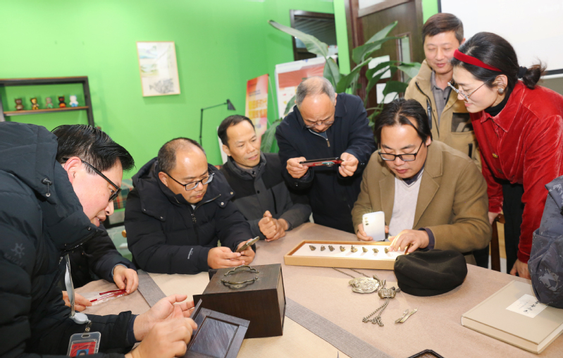陈老师手持一件件精美的明清银饰,细细讲解着它们的工艺特色、文化内涵以及每一款银饰背后鲜为人知的故事。从造型典雅的发簪到寓意吉祥的锁片,从精雕细琢的手镯到玲珑剔透的耳环,这些银饰不仅展现了古代工匠们巧夺天工的技艺,更反映了当时的社会风貌、民俗风情以及人们对美好生活的向往与追求。大家围坐在一起,聚精会神地聆听着陈老师的讲解,不时发出阵阵赞叹声,仿佛穿越时空,与古人进行了一场心灵的对话。值得一提的是,何卫平副经理特意带来了自己小时候佩戴过的银锁以及个人收藏的珍贵银饰,与大家共同分享其中的文化韵味和情感价值。张珊老师也积极响应,带来了自己珍藏的银饰,与大家一起交流鉴赏,现场气氛热烈而融洽。