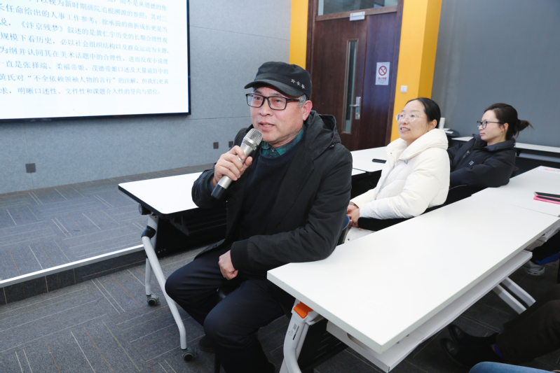 交流环节,经理李方联首先感谢何卫平的分享,对其前期的精心准备,独到的学术见解,以及分析黄仁宇的《汴京残梦》是如何从历史学、文学视点去研究艺术问题的分享表示充分赞同,并号召老师们积极主动举行读书分享会。党总支书记祝燕芳认为,读书会是个很好的倡议,将积极支持,同时建议可以举行一些党建与业务结合的分享主题。顾明智教授现场表达了自己的感受,他以自己的科研项目为例,认为这种分享会能拓展大家的视野,大家经常在一起交流有利于找到新的研究方向,形成新的成果。