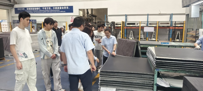 活动中,总裁办办公室主任龚率带领师生们实地参观了贝尔地板的现代化制作车间和品牌展厅。龚主任结合生产现场,详细讲解了产品的精密工艺流程、严格的质量控制体系以及环保理念,并介绍了贝尔的主要服务对象和市场定位,使员工们对企业的技术实力和产品应用有了直观深入的了解。