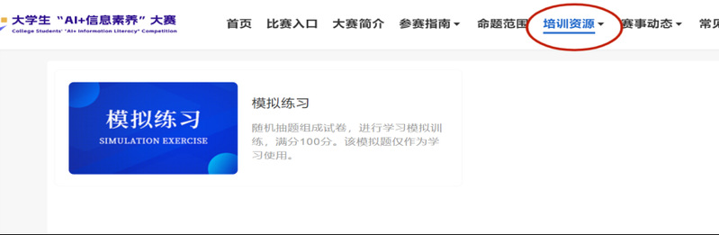 2、日常练习:通过“培训资源”下的模拟练习模块进行练习。