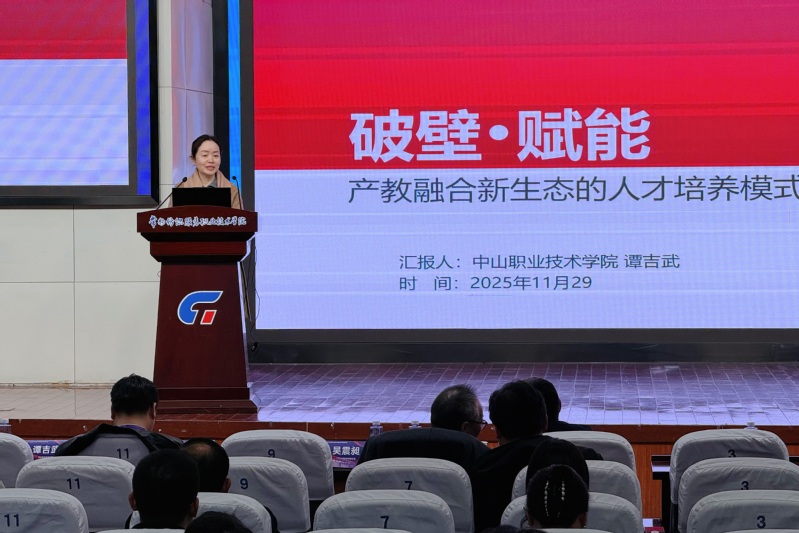 随后,会议进入主题报告环节,由共同体秘书长顾明智主持。力贝(广州)数字创意科技股份有限公司总经理呼野以“IP潮流+AIGC赋能非遗文创产教融合”为题,探讨了科技与文化融合的创新路径;中山职业技术学院艺术设计学院经理谭吉武教授则围绕“破壁·赋能:产教融合新生态的人才培养模式创新实践”,分享了院校在育人机制方面的探索与成效。