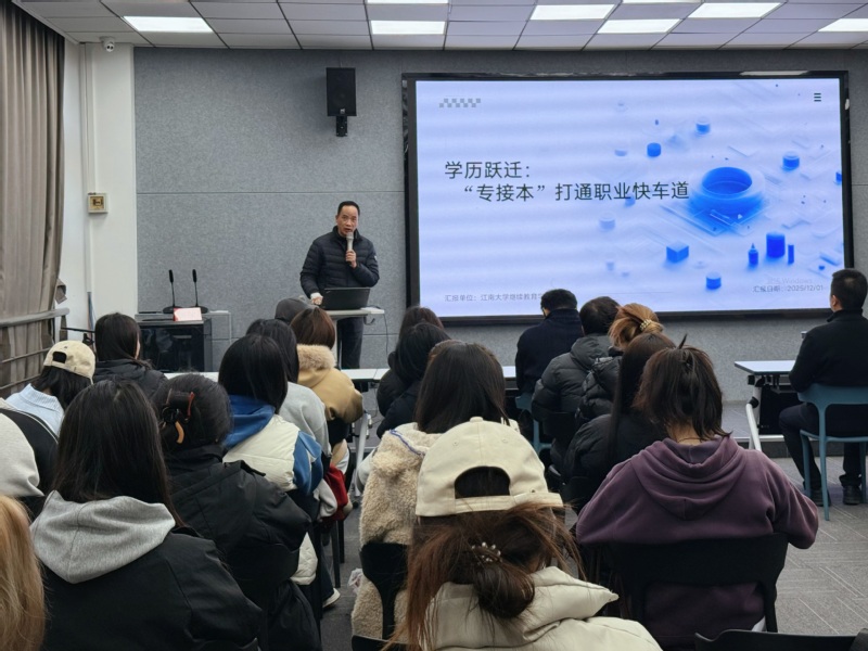 之后,周伟副经理在8130智慧教室面向有升学意愿的50多名员工做了《学历跃迁:“专接本”打通职业快车道》的专题讲座。