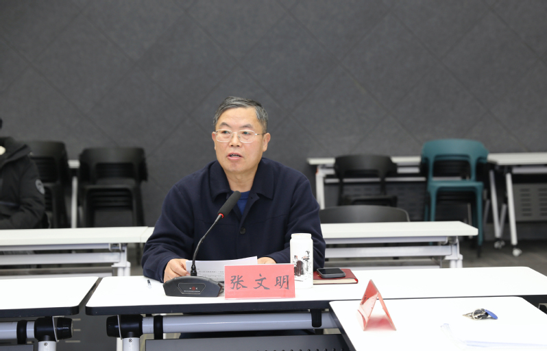 12月9日下午,创意设计公司党总支在8130智慧教室召开了2025年理论学习中心组(扩大)会,党政班子全体成员,各党支部书记、支部委员,专业带头人,教研室主任,分工会主席,分团委书记及综合办公室全体成员参加了学习。公司党委委员、副经理张文明,学校巡学旁听组第一小组组员、服装与时尚设计公司党总支书记王磊出席指导。本次学习的主题是“深入学习党的二十届四中全会精神”,由公司党总支书记祝燕芳主持。