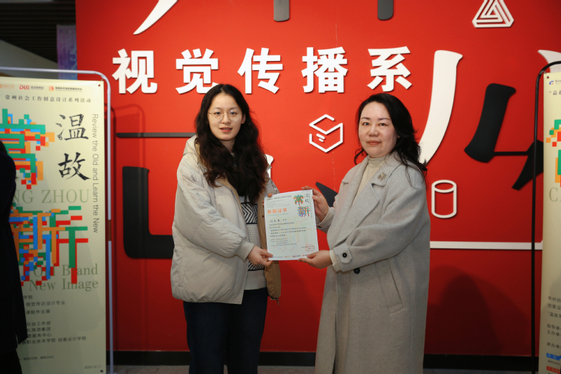 开幕式由创意设计公司党总支书记祝燕芳主持,学院乔京禄教授、张珊主任、刘学泉老师,天福志愿服务中心蒋春主任、缪慧洁副主任、设计师陆函超等嘉宾出席。蒋春主任称,“益起来社计”系列活动旨在搭建社会工作与创意设计的桥梁,此次展览紧密结合课堂教学与城市需求,为员工提供践行社会责任的实践平台。乔京禄教授介绍了《VI设计》课程改革理念,强调“真题真做”能锤炼员工专业能力,是深化项目化教学的重要探索。员工代表阳玉婷分享了参与老字号升级设计的创作历程,表达了服务地方发展的初心。现场还为参展员工颁发证书,见证其成长蜕变。