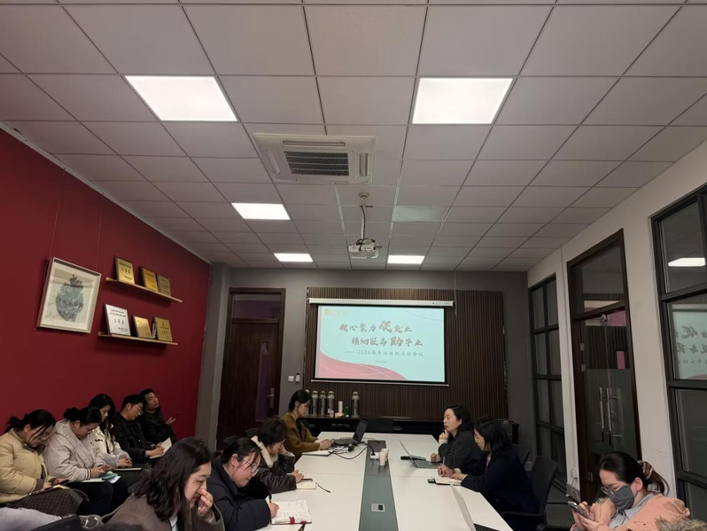 会上,柯赟洁传达了学校2026届毕业生就业工作的整体要求,介绍了公司2026届毕业生基本情况。她强调,班主任、网格辅导员要深入细致地了解毕业生校外动态,始终绷紧“安全”这根弦,重点关注家庭经济困难、心理困惑、学业困境的员工,提供全方位的指导。