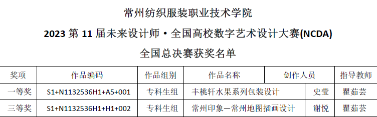 近日,由工业和信息化部人才交流中心主办的第十一届未来设计师·全国高校数字艺术设计大赛(NCDA)获奖名单公布,创意学院师生作品在1826所参赛高校的近29万件作品中脱颖而出,共获国赛奖项2项,其中,获得一等奖1项、三等奖1项;另外在省级赛中,获得一等奖2...