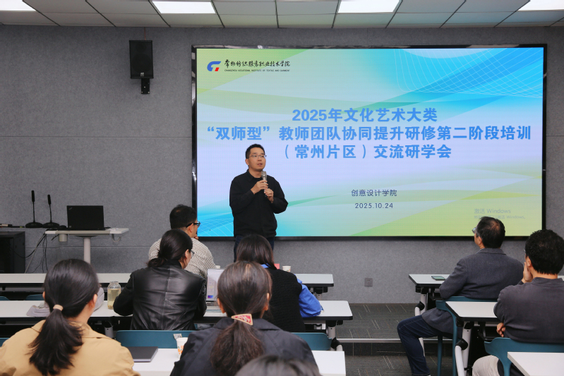 2025年10月24日下午,在学校人事处指导下,betway西汉姆联承办了2025年文化艺术大类“双师型”教师团队协同提升研修第二阶段培训(常州片区)交流研学会。会议在betway西汉姆联8130智慧教室举行,学校人事处处长夏冬,副处长陈雪华,培训项目负责人、苏州工艺美术...